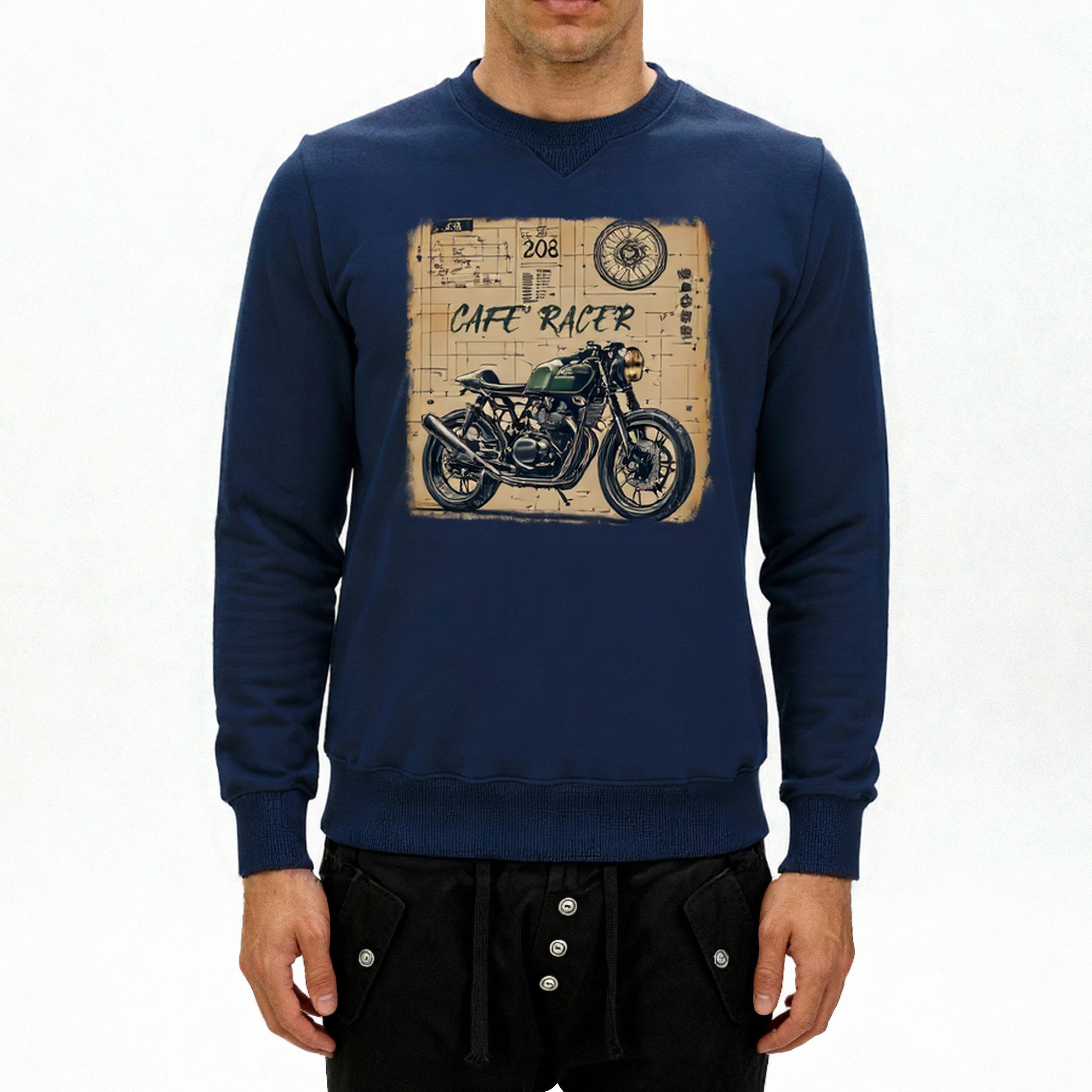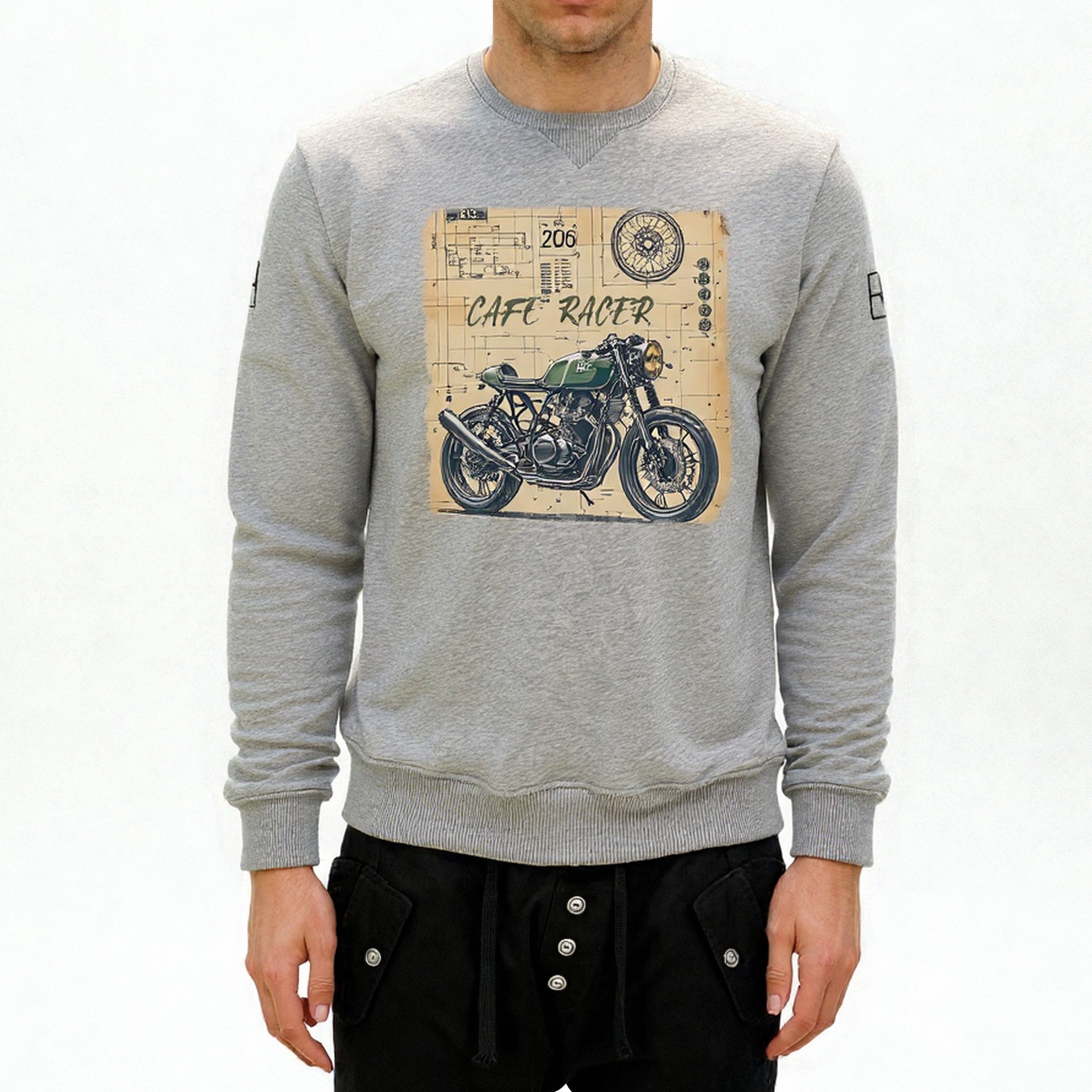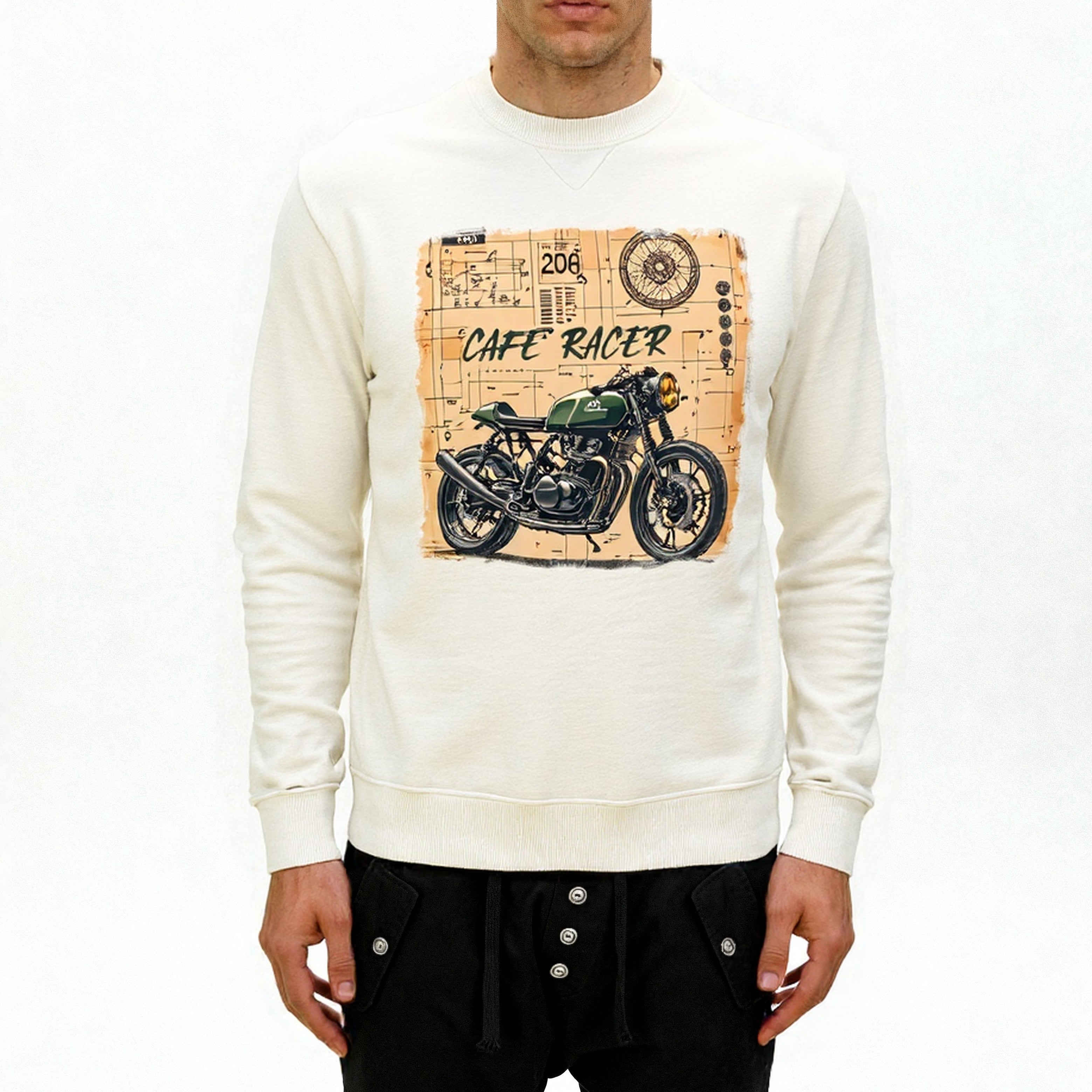 Felpa uomo girocollo Stampa Cafè Race di qualità superiore
